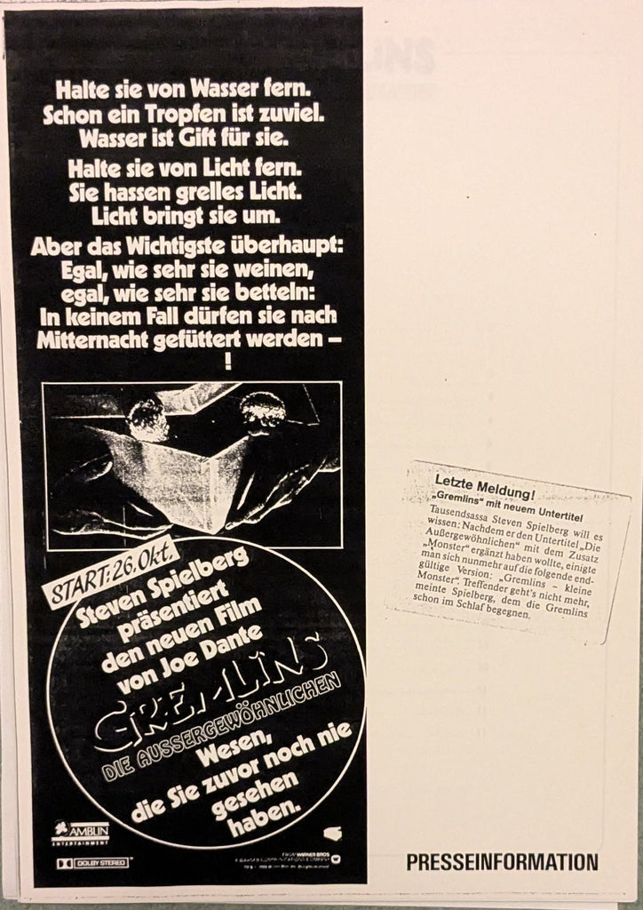 Gremlins - Die Aussergewöhnlichen Presseheft