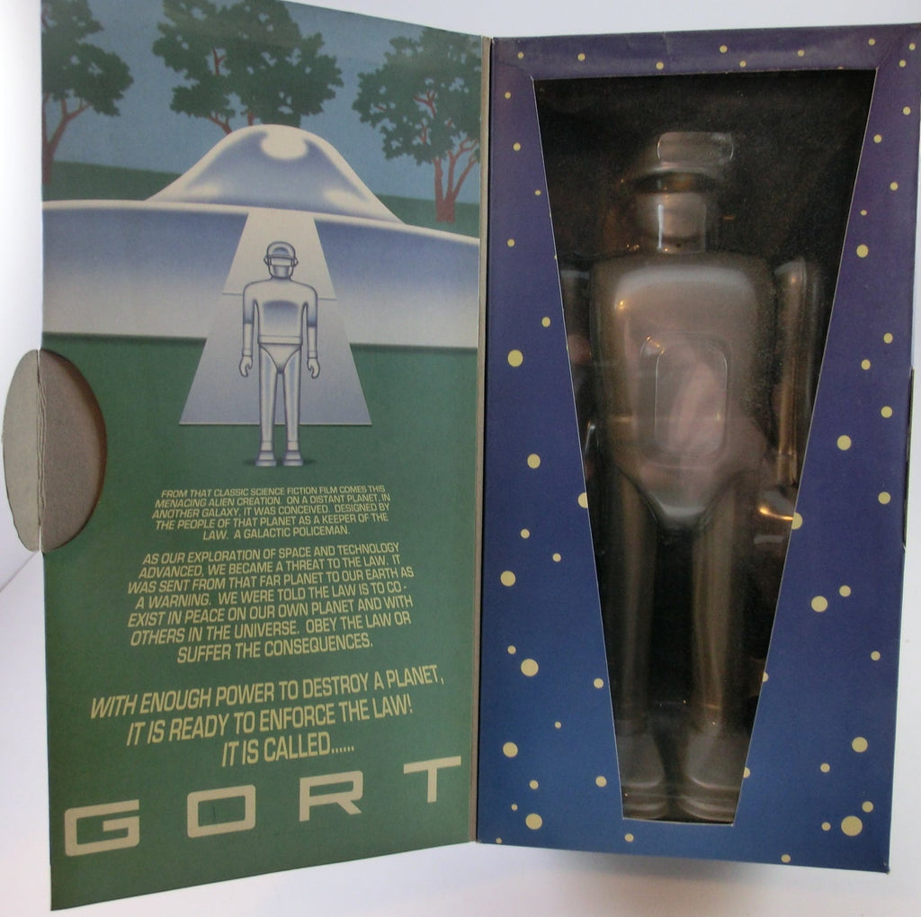 Original verpackte , 22 cm hohe und praktisch unbenutzte, gehende Aufziehfigur aus dem SF-Klassiker: "Der Tag, an dem die Erde stillstand"